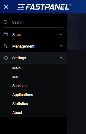 - Settings - ovde se nalaze podešavanja vezana za FastPanel: