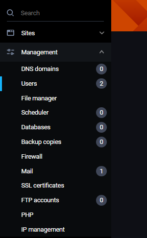 Da bi kreirali dodatnog FastPanel korisnika ili upravljali postojećim potrebno je da u meniju sa leve strane odabrati Management -> Users: