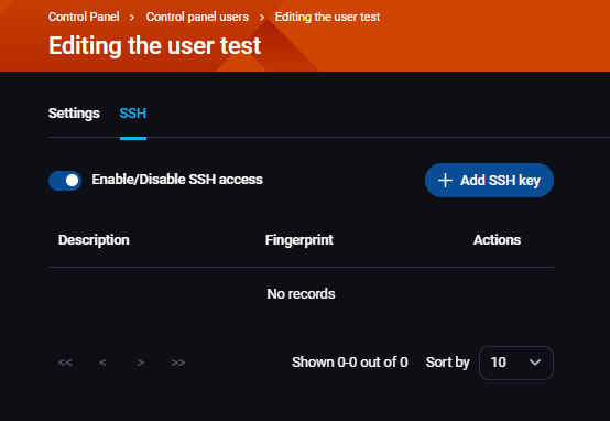 - +Add SSH key - dodavanje SSH ključna za tog korisnika