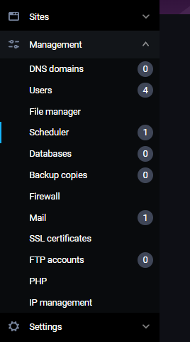 Za upravljanje svim cronjob-ovima kreiranim na serveru potrebno je da u meniju sa leve strane odaberete Management -> Scheduler: