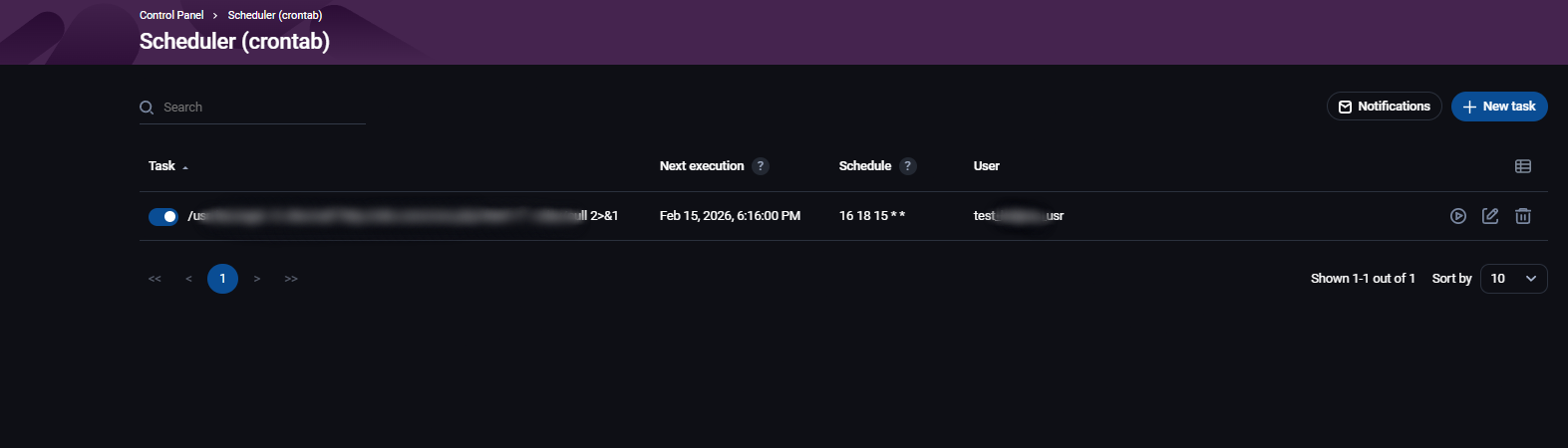 Iznad liste sa desne strane je plavo dugme +New Task gde se može kreirati novi cronjob. Kreiranje novog, kao i uređivanje postojećeg cronjob-a možete videti ovde. Razlika u odnosu na to uputstvo je što ovde možete birati korsinika za cronjob, a ulaskom kroz site card se automatski bira korisnik tog sajta.