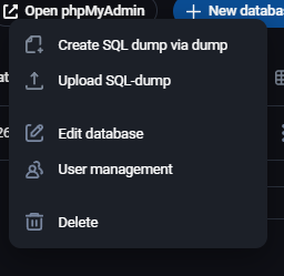 - +New database - kreiranje nove baze podataka je isto kao u ovom tekstu koji se bavi ovom temom kroz site catd, razlika je dodatno polje "website" kojim možete bazu povezati sa nekim sajtom