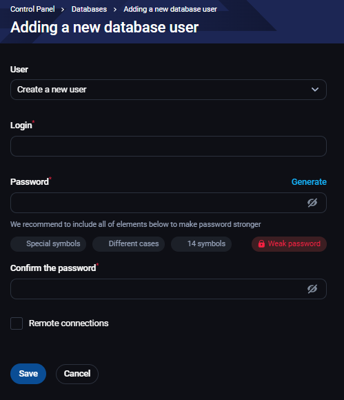 - Owner - FastPanel korsinik vezan za korisnika baze