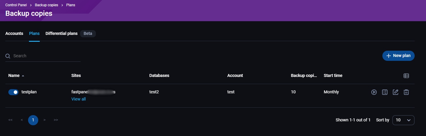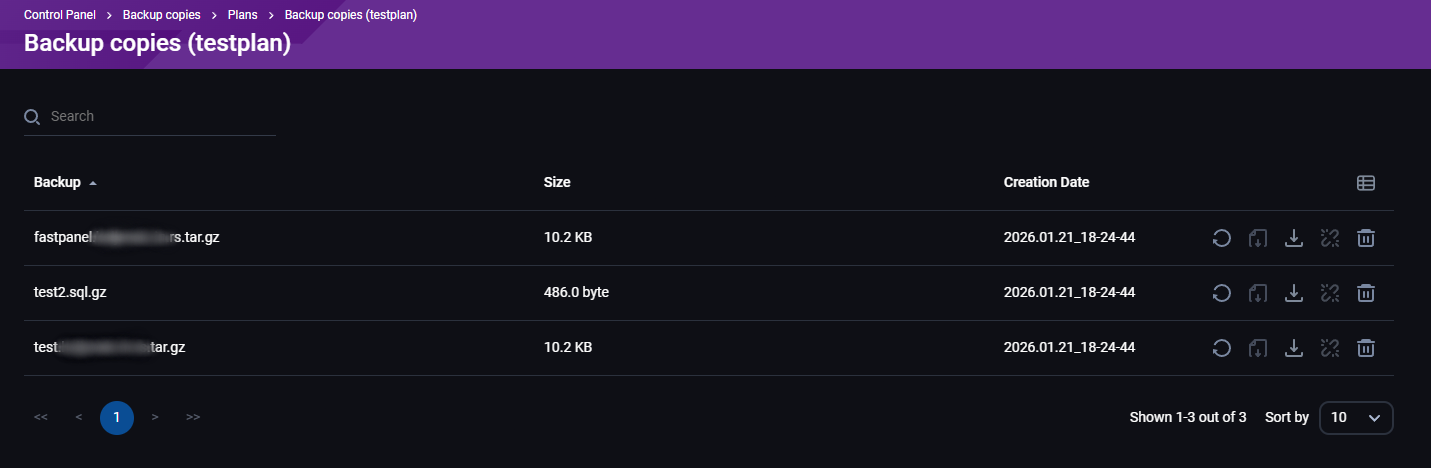 - Owner - FastPanel korisnik sa kojim je povezan backup nalog